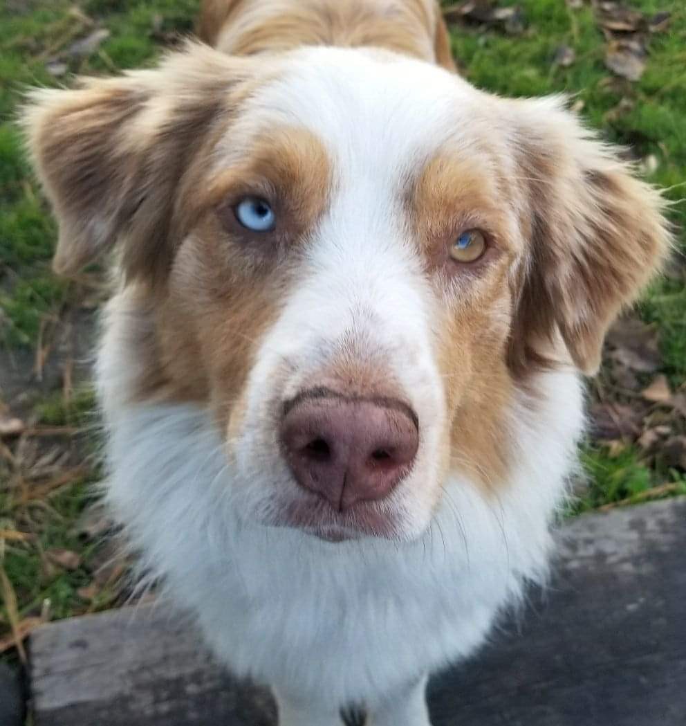pretty dog with blue and brown eyes
